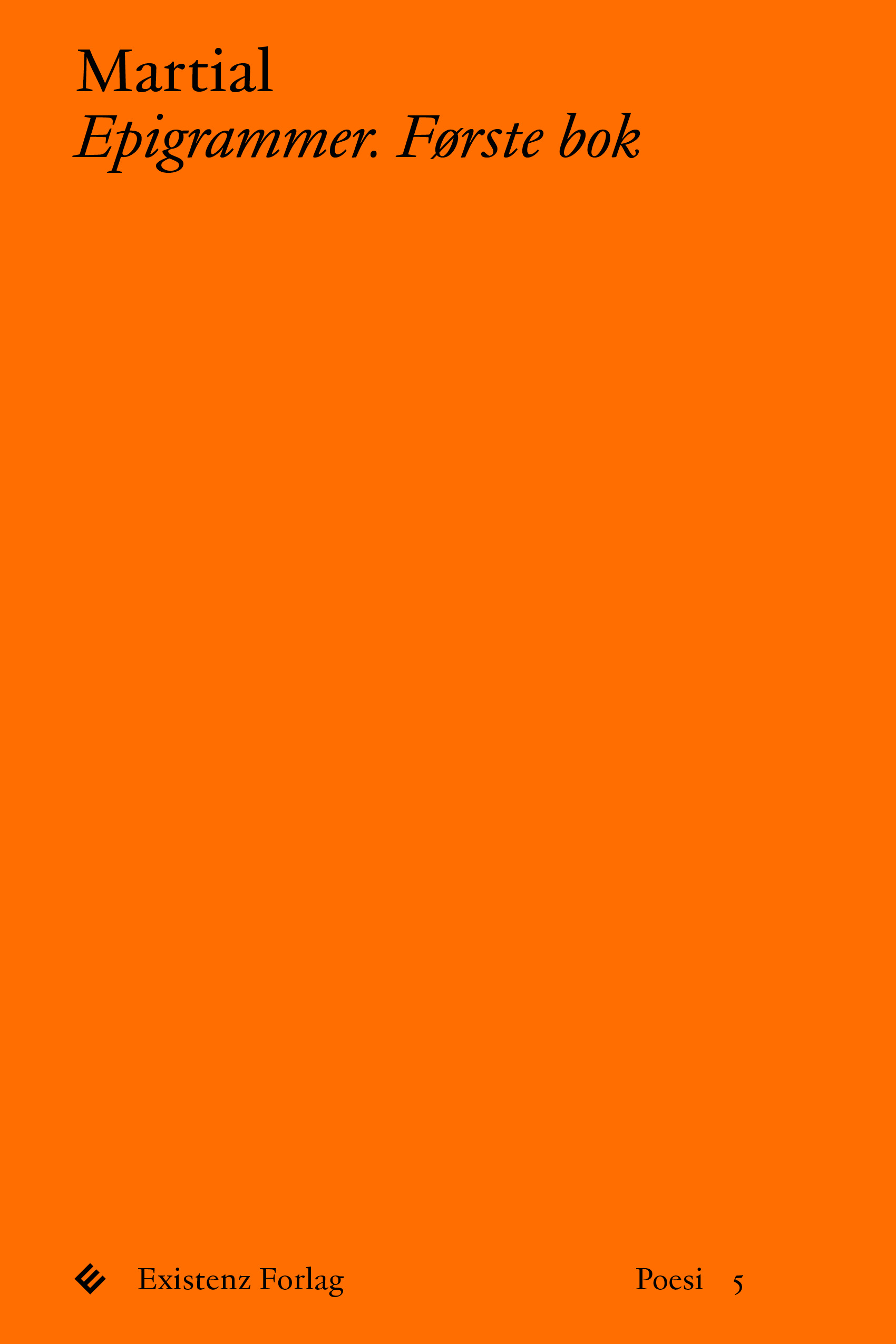 Den romerske dikteren Martial betraktes av de fleste som sjangerens udiskutable høydepunkt, og epigrammene hans har gjennom tidene vært en stadig kilde til så vel inspirasjon som frustrasjon. For denne poeten har ikke bare blitt elsket for sitt vidd; han har blitt kritisert for sin smisking for keiseren (keiserpanegyrikk), og – ikke minst – for sitt forfatterskaps mange obskøne epigrammer. Men det er uansett forfatterens våkne blikk og velformulerte penn som gjør ham til en levende klassiker, enten man følger ham gjennom Romas gater, opplever en fest gjennom hans øyne, eller tar inn over seg ris eller ros som rettes mot venn og uvenn. Her presenteres for første gang på norsk en av Martials epigrambøker i sin helhet.